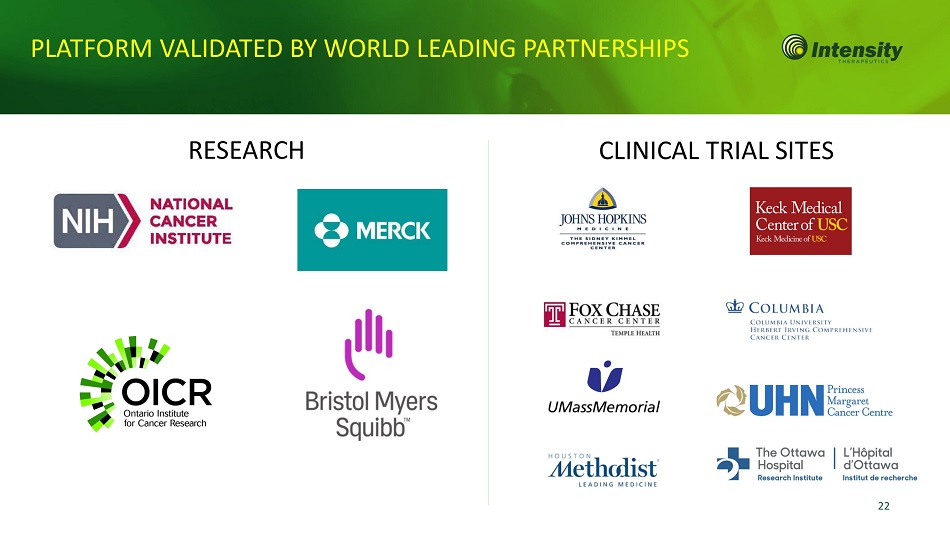 22 PLATFORM VALIDATED BY WORLD LEADING PARTNERSHIPS RESEARCH CLINICAL TRIAL SITES